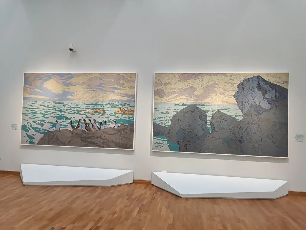 Вторая локация — Кадашевская набережная. Выставка «Арктика» стала полной противоположностью: лаконичность, холодная эстетика, свет и пространство. Отличный пример того, как природа и современное искусство создают визуальный минимализм.